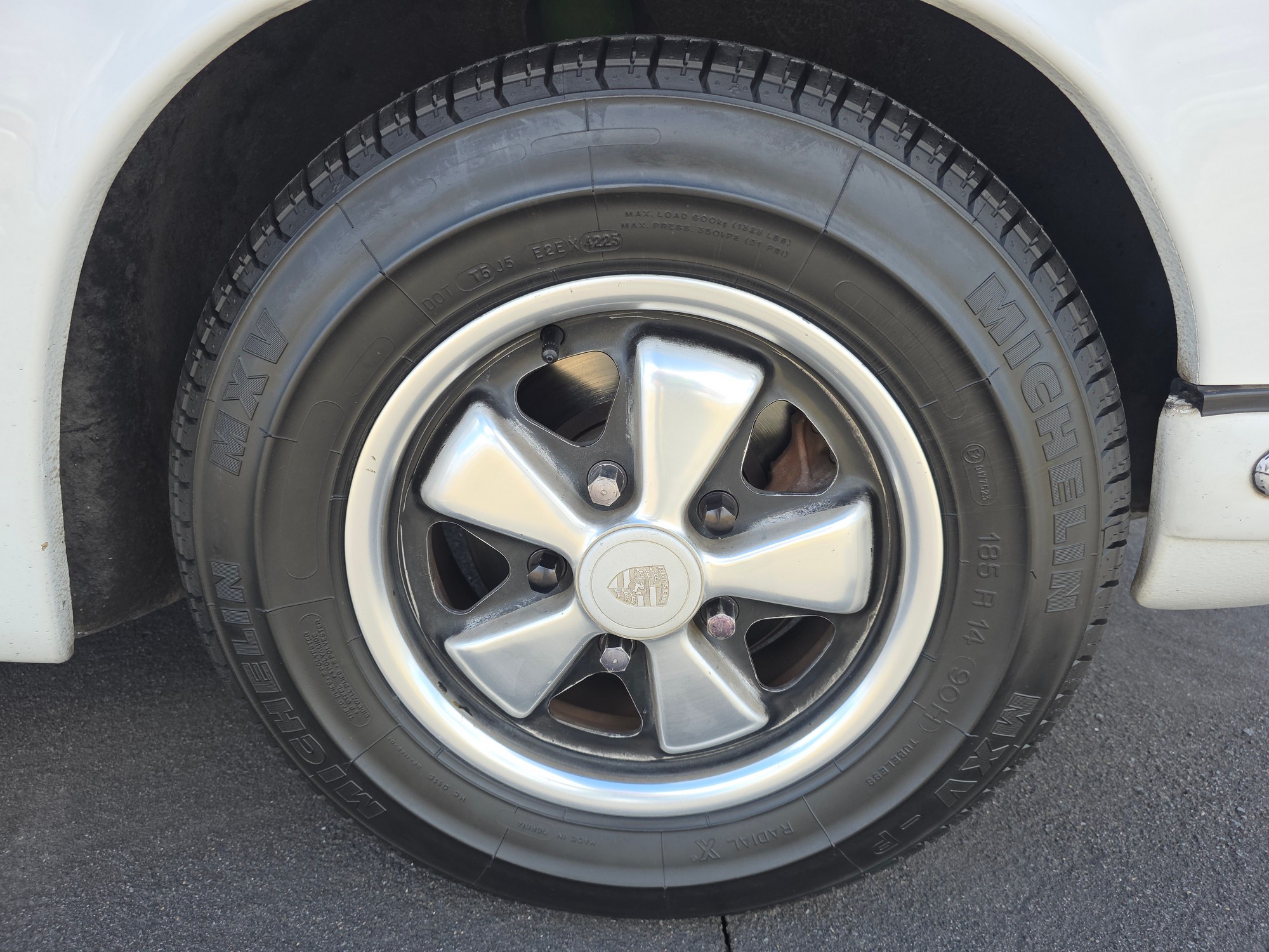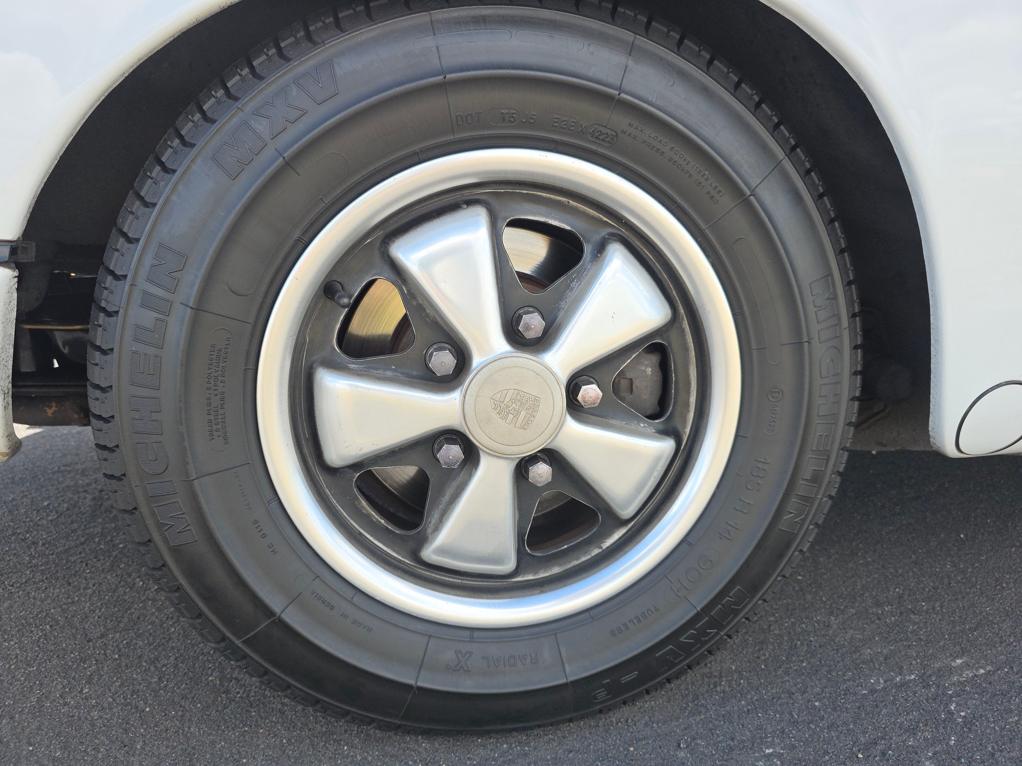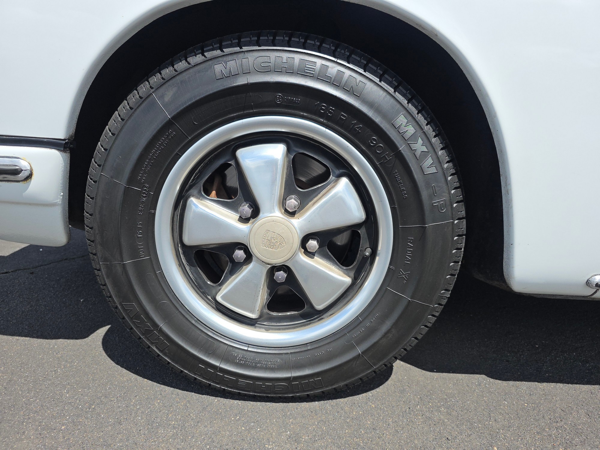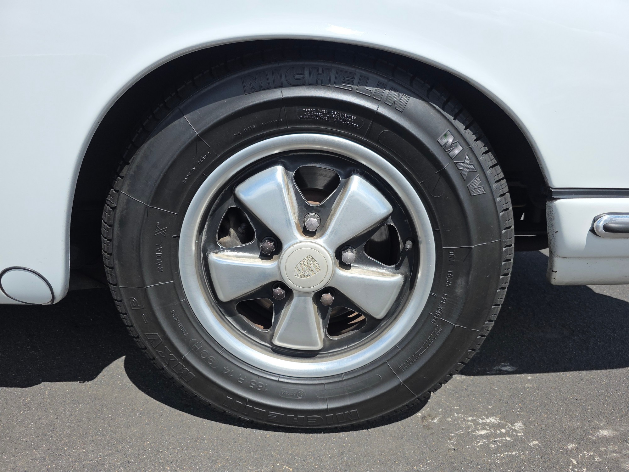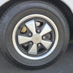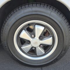 Body & Exterior: Straight body with an older repaint in the original Light Ivory. It presents beautifully, with excellent gaps and shutlines. The brightwork shows authentic patina, adding character without detracting from its vintage appeal. All glass is good, and it rides on authentic 14-inch Fuchs wheels (from 1976) fitted with brand-new Michelin MXV tires.
