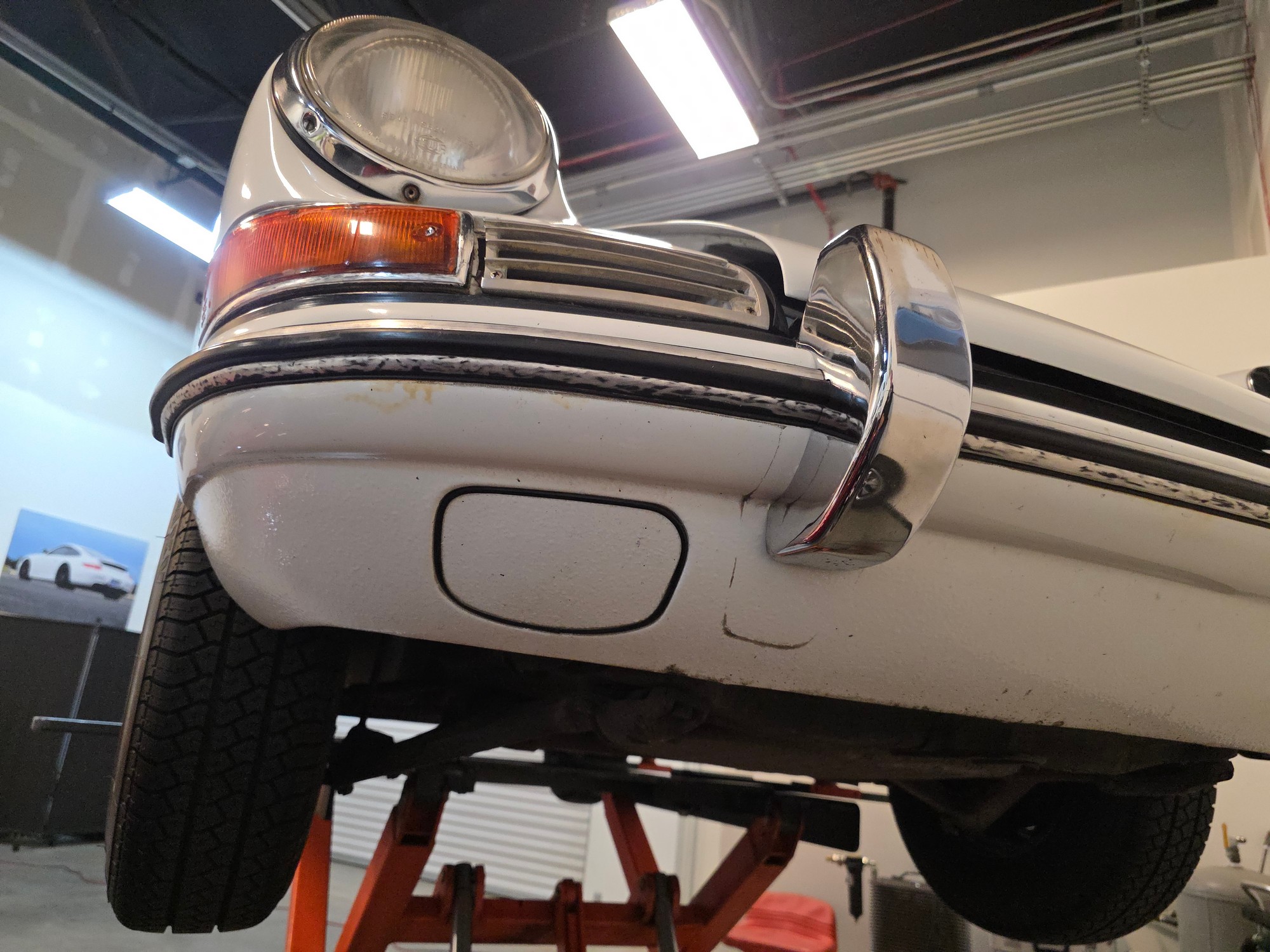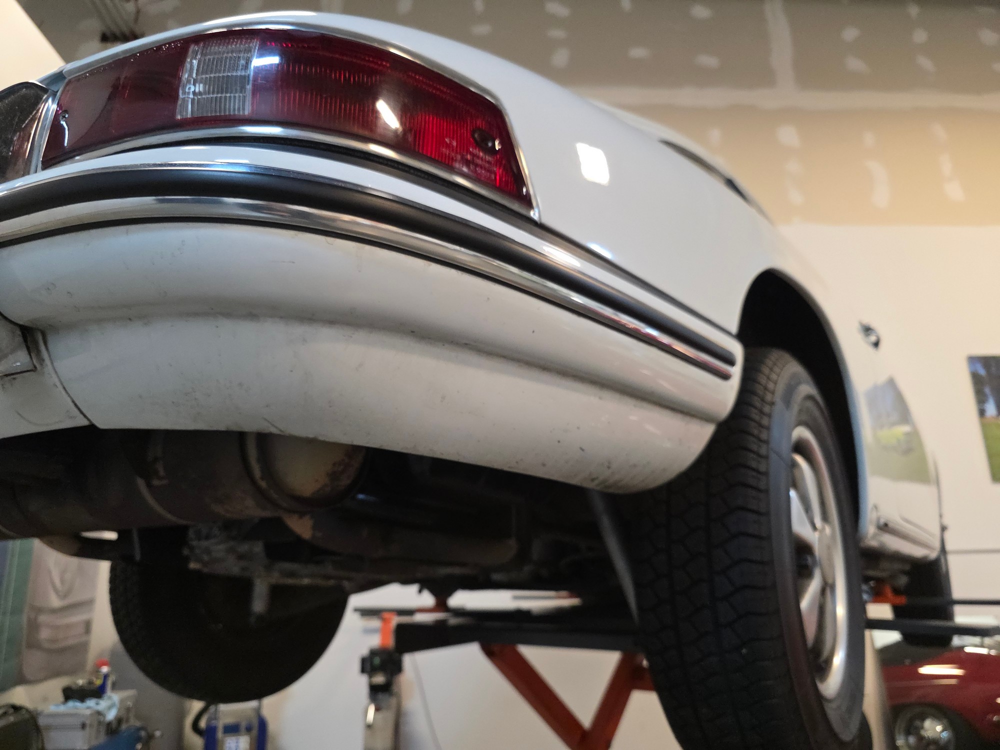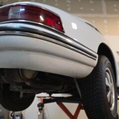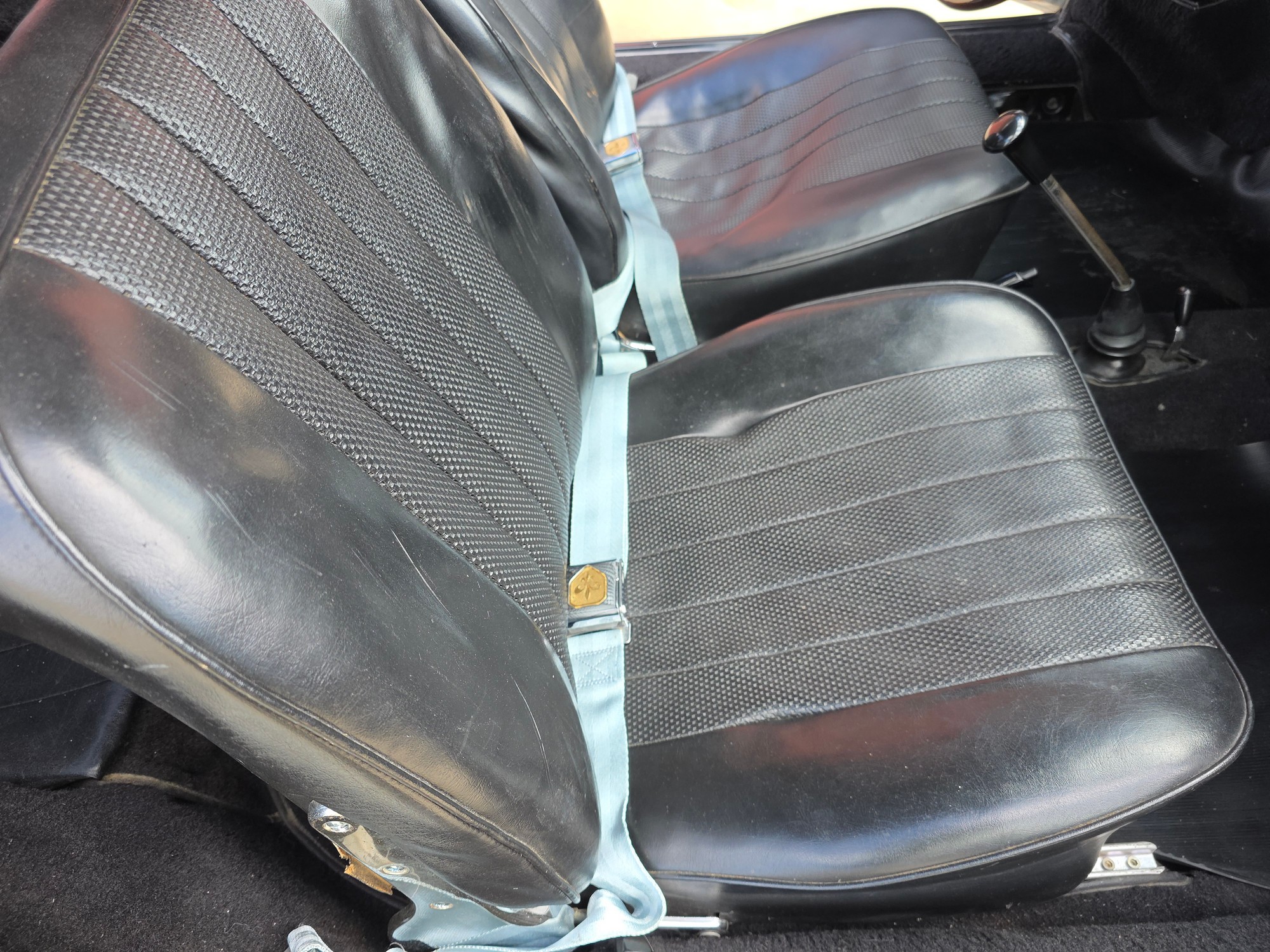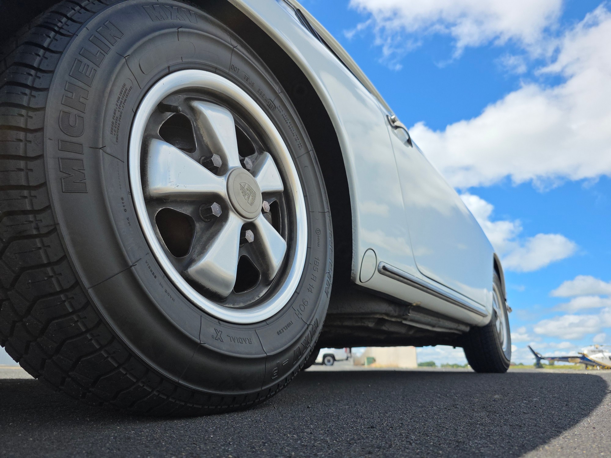 Body & Exterior: Straight body with an older repaint in the original Light Ivory. It presents beautifully, with excellent gaps and shutlines. The brightwork shows authentic patina, adding character without detracting from its vintage appeal. All glass is good, and it rides on authentic 14-inch Fuchs wheels (from 1976) fitted with brand-new Michelin MXV tires.