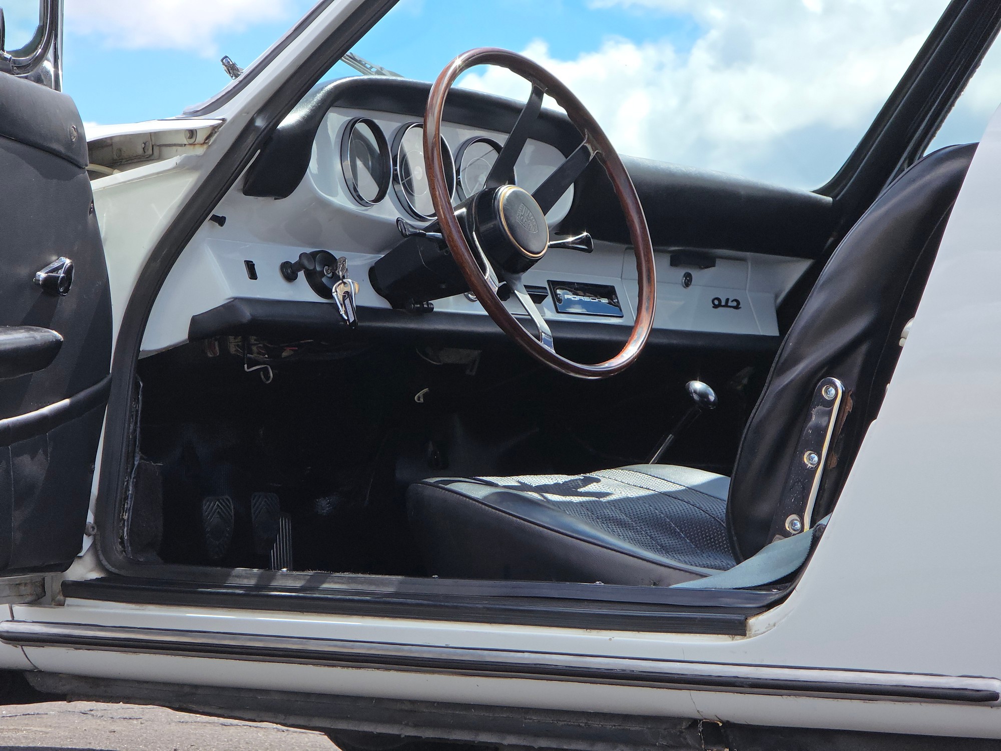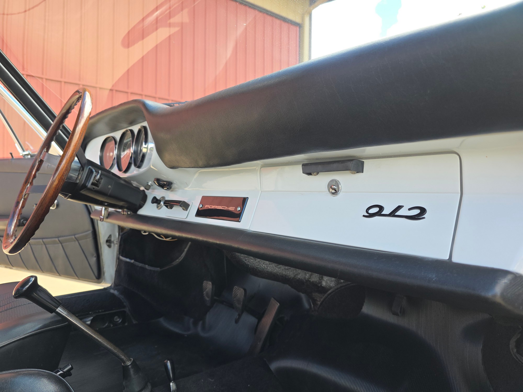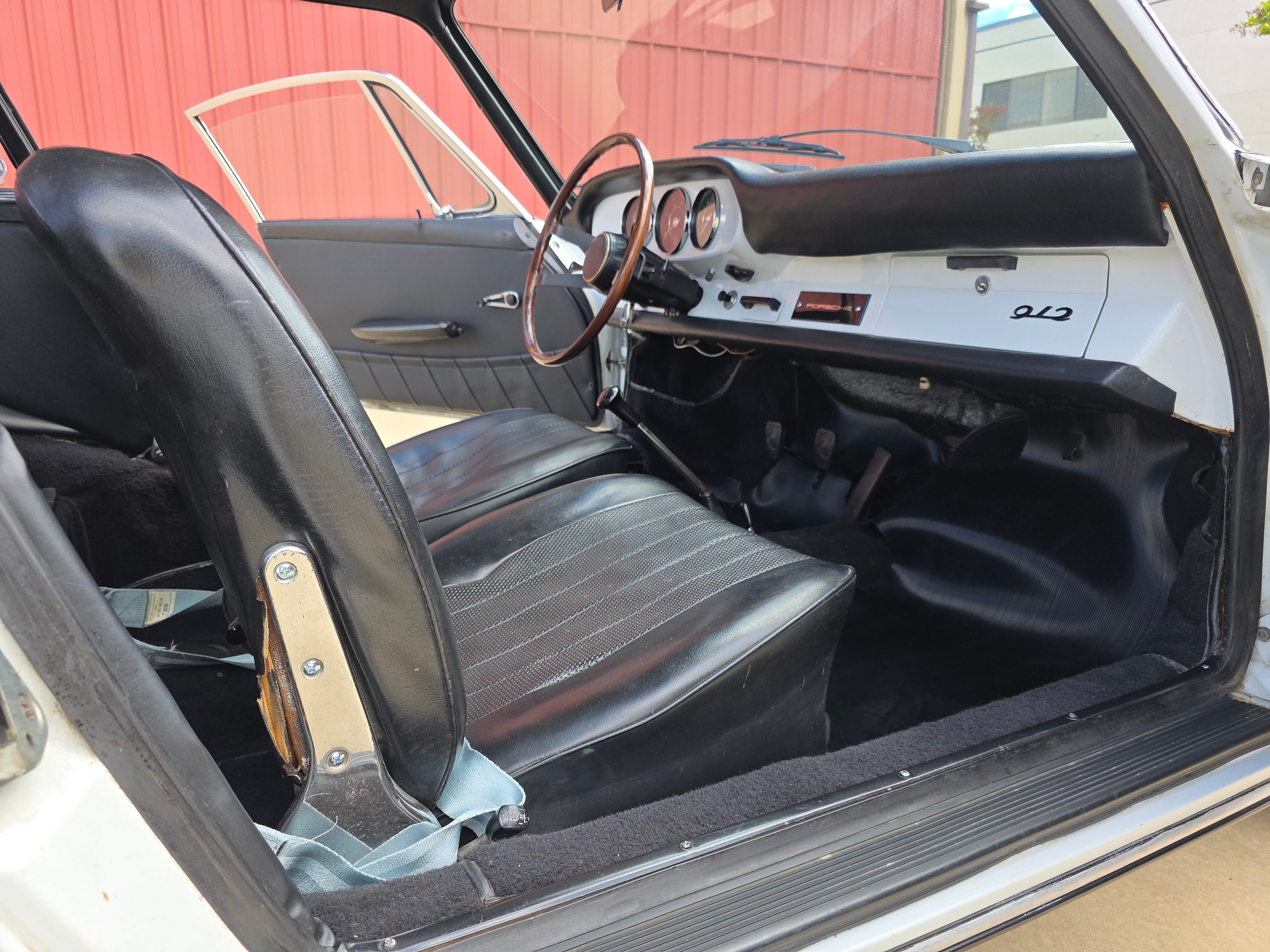 Interior: A pleasing mix of original and sympathetic replacement parts. The beautiful 3-gauge painted dash is a highlight — clean and evocative of the earliest 912s. Door panels and headliner are very good; carpets are solid. The seats show some honest patina and would benefit from light restoration, but everything functions as it should, including all gauges and electrics.