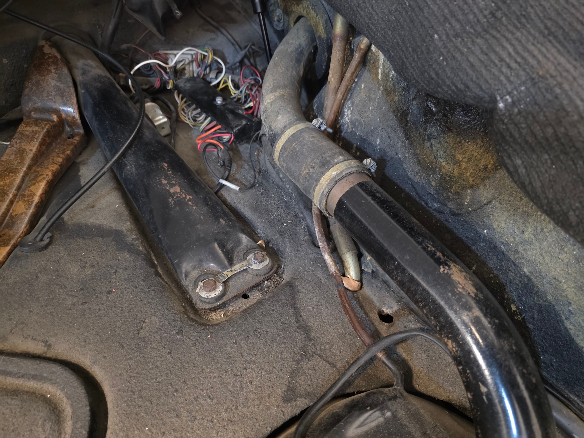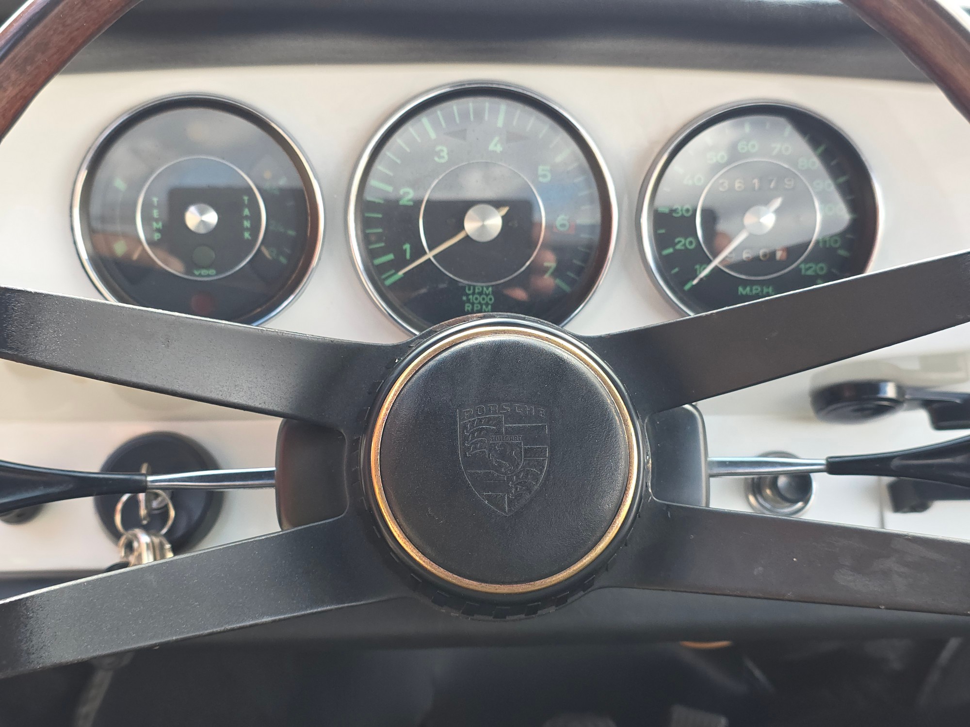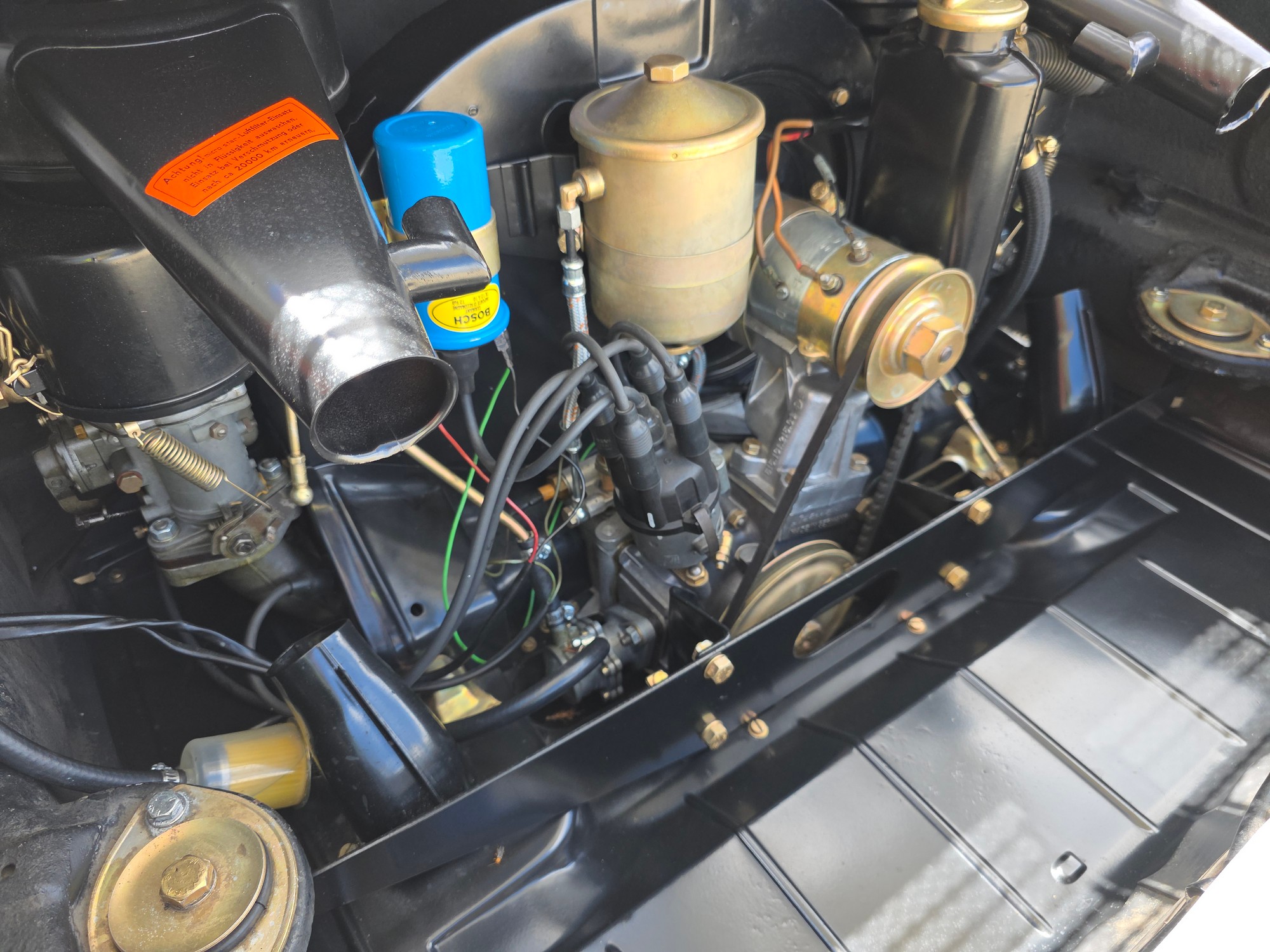 Interior: A pleasing mix of original and sympathetic replacement parts. The beautiful 3-gauge painted dash is a highlight — clean and evocative of the earliest 912s. Door panels and headliner are very good; carpets are solid. The seats show some honest patina and would benefit from light restoration, but everything functions as it should, including all gauges and electrics.