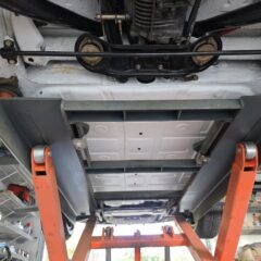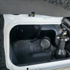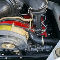 Darüber hinaus wurde das Fahrzeug bis auf das blanke Metall abgeschliffen und vollständig zerlegt, bevor es nach Originalspezifikation neu lackiert wurde. Einige alte Fotos aus dieser Zeit belegen die Restaurationsarbeiten. Auch der Innenraum, Kofferraum und Motorraum wurden im Zuge revidiert.